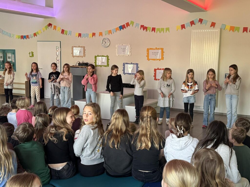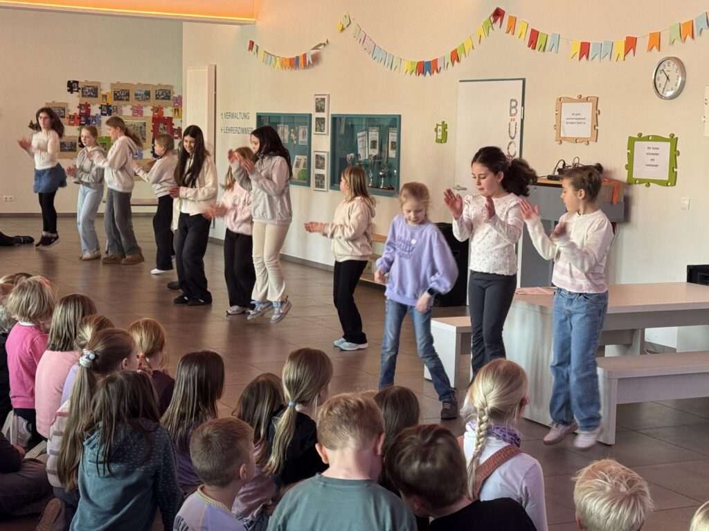Auch die Klasse 1a trug mit ihrer Aufführung des Gedichts „Der Hase mit der roten Nase“ zum Programm bei und begeisterte das Publikum. Zusätzlich präsentierte die Tanz-AG einen mitreißenden Tanz, der für große Begeisterung sorgte.